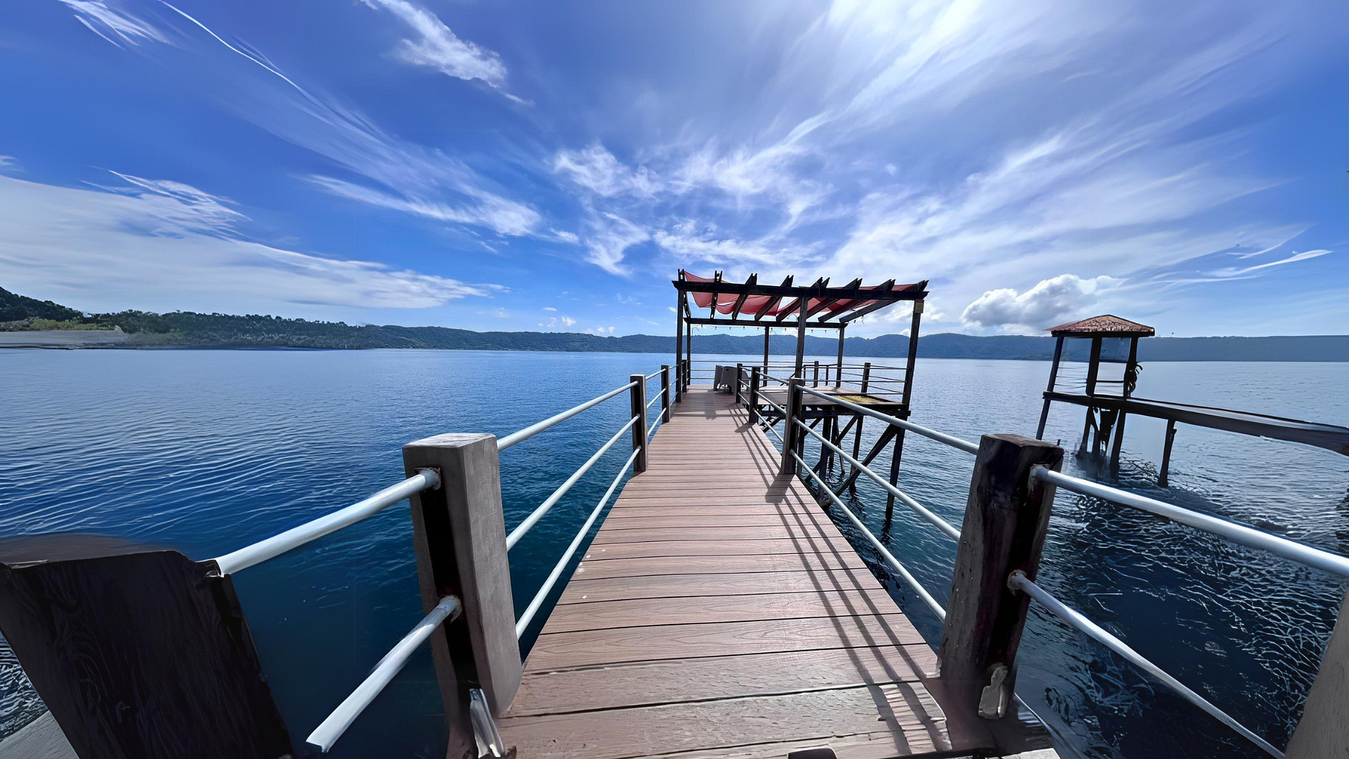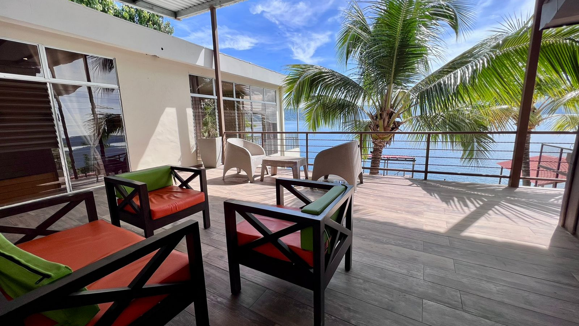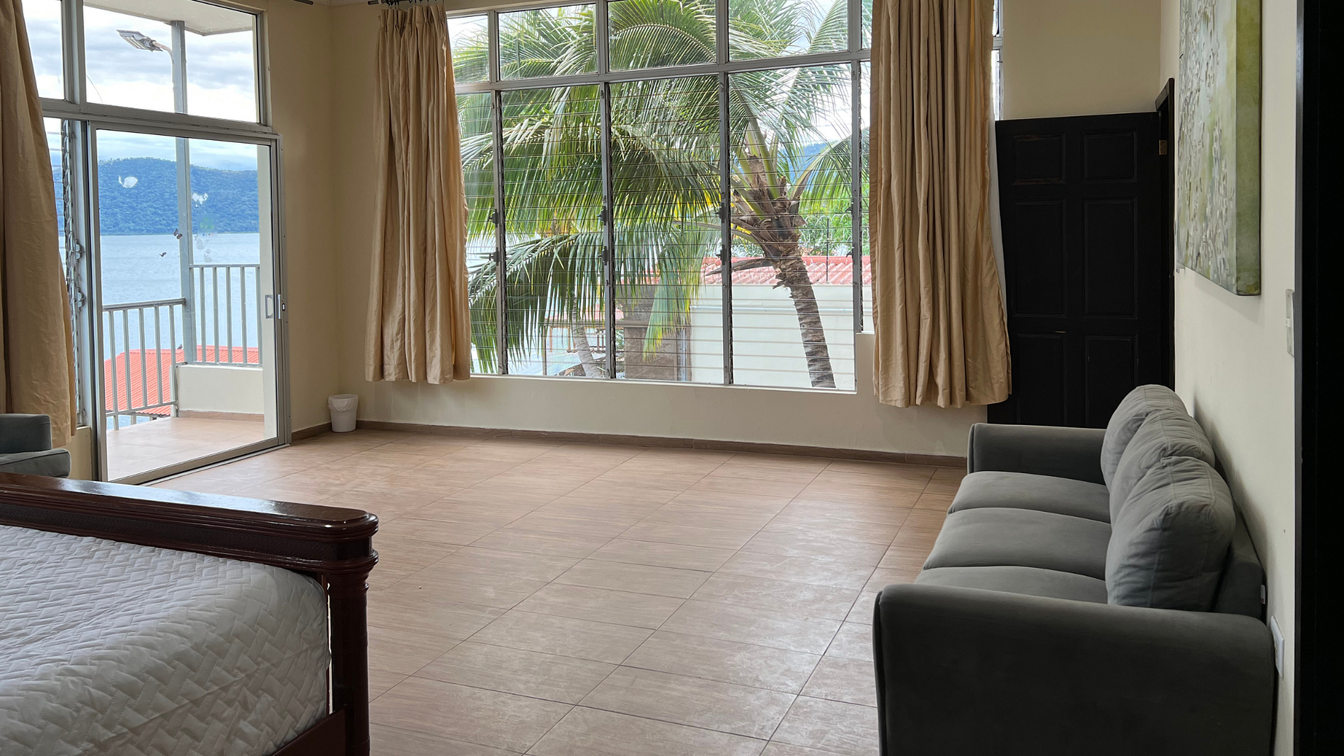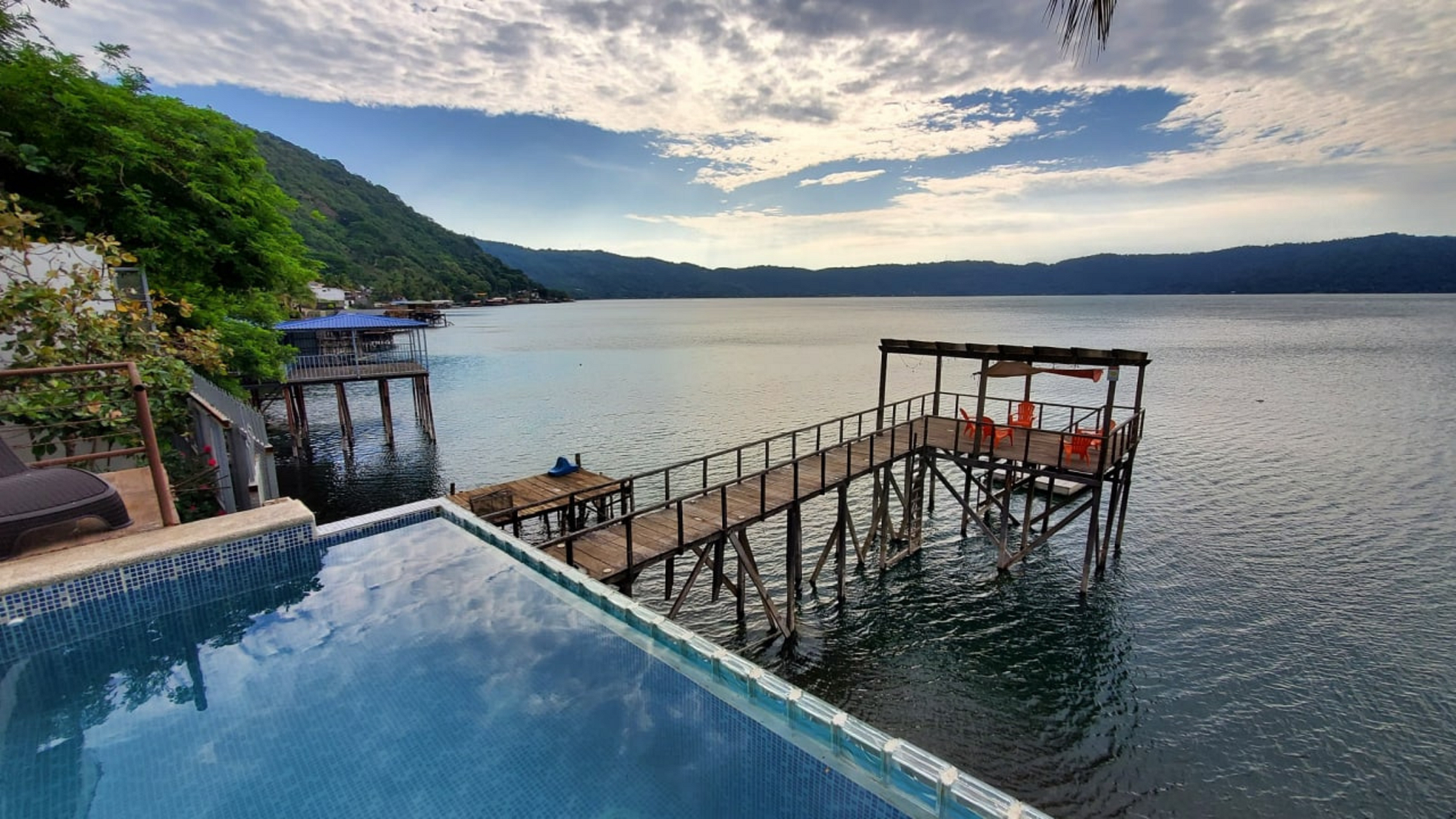 Acogedora casa en el Lago de Coatepeque, Quinta Sunset cuenta con una espectacular vista al lago desde sus terrazas. Además, tiene tres habitaciones y una cabaña. La habitación principal tiene vista al lago y dentro de la casa: