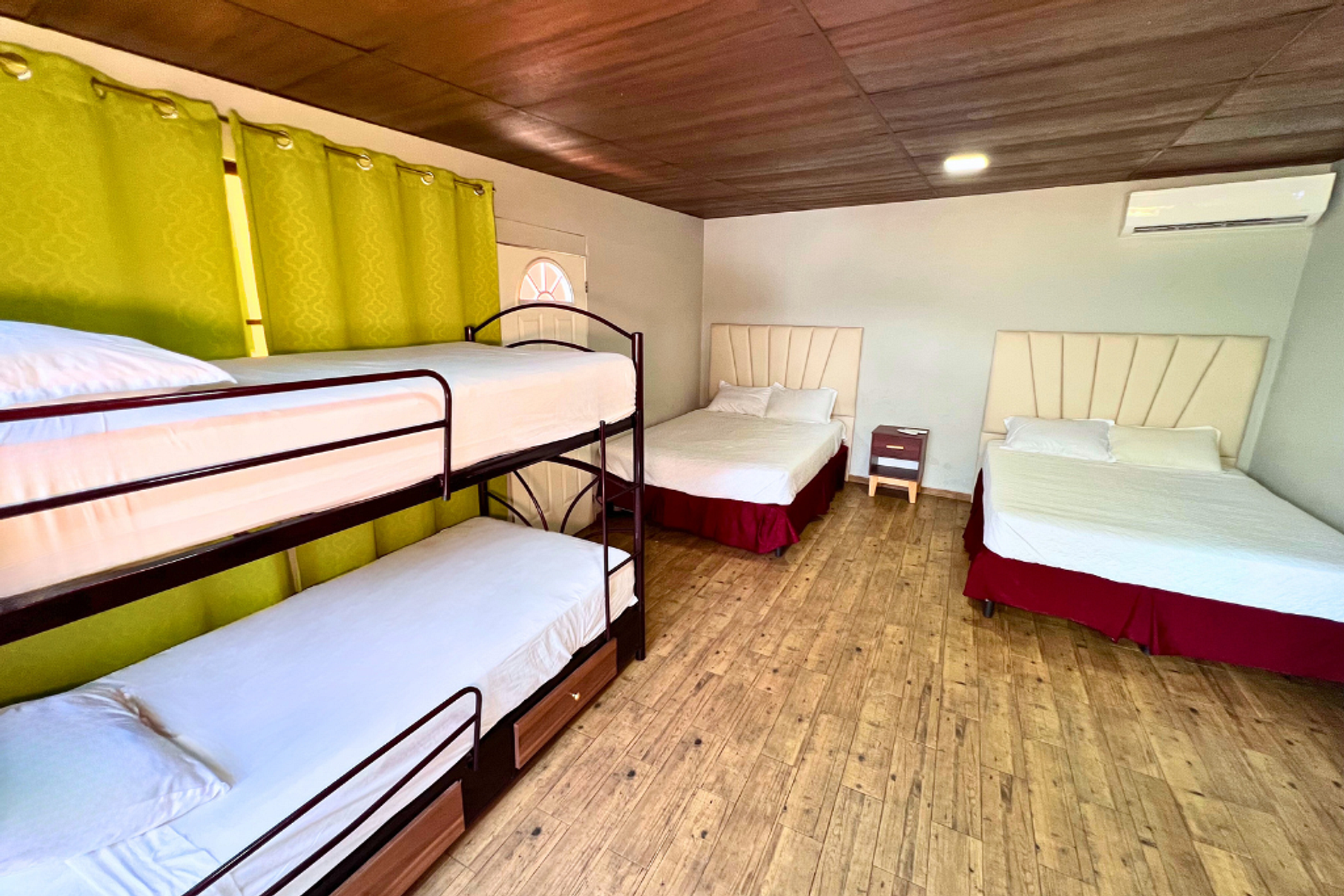 -5 camas, 1 litera y 2 baños.