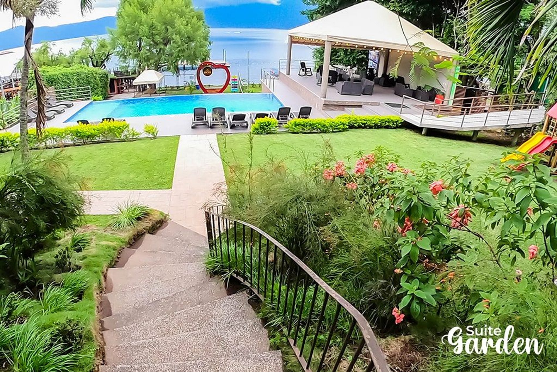 Villa Noelia está ubicada en las orillas del Lago de Coatepeque, todas las Suites están rodeadas de jardines, por lo que tendrás contacto directo con la naturaleza disfrutando del hermoso lago. Suite Garden cuenta con sala, comedor, cocina completamente equipada , tres habitaciones, tres baños, closet y aire acondicionado. Además, contamos con muelle, acceso al lago y piscina infinity.