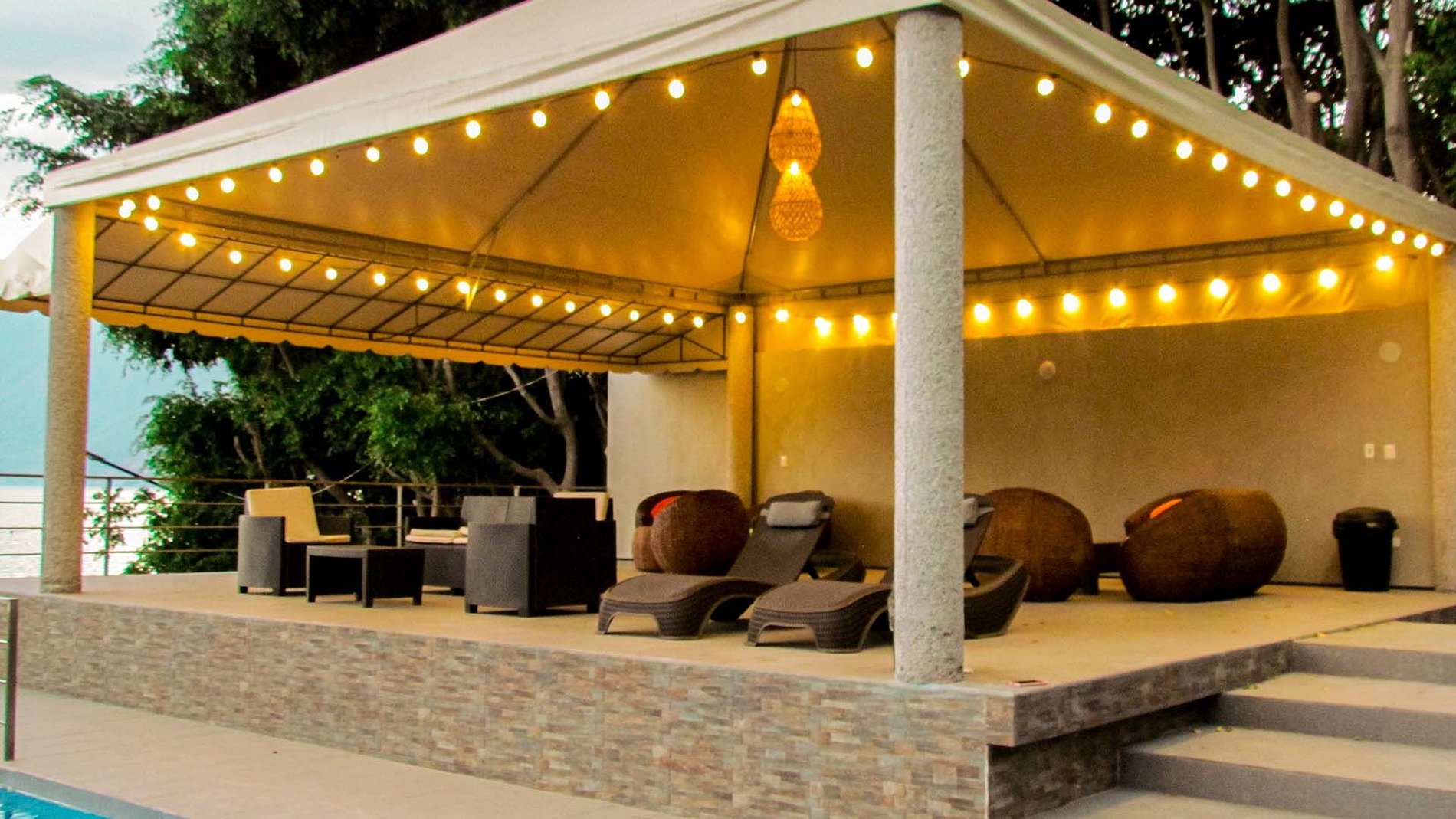 Tiene hermosos jardines, terrazas, muelle y una piscina infinity con una vista increíble al hermoso Lago de Coatepeque.