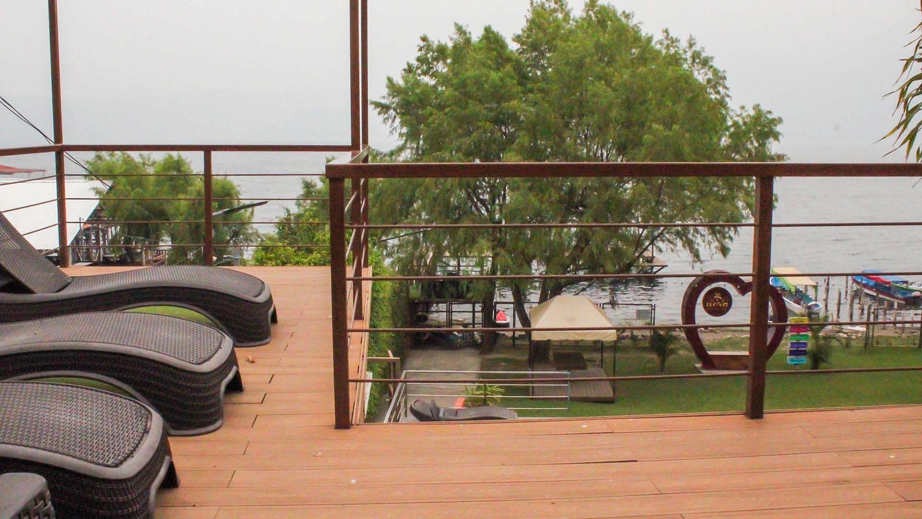 El acceso a Villa Noelia es fácil, cualquier tipo de vehículo puede llegar a nuestras instalaciones. Dentro de la Villa encontrarás muchas áreas verdes, además de una hermosa piscina infinity, muelle y terrazas con vista al Lago de Coatepeque. En Villa Noelia, las áreas comunes se comparten con otros huéspedes.