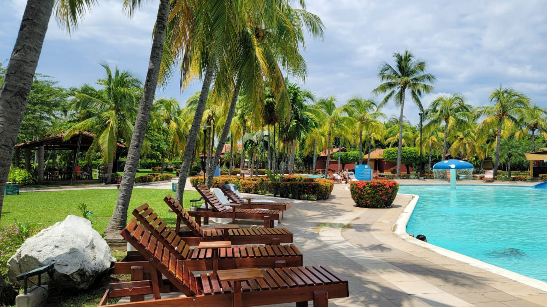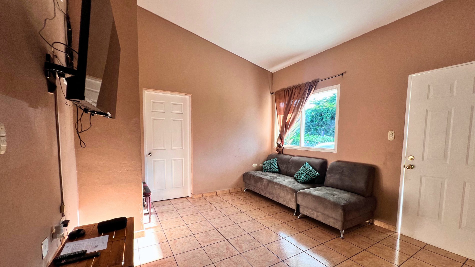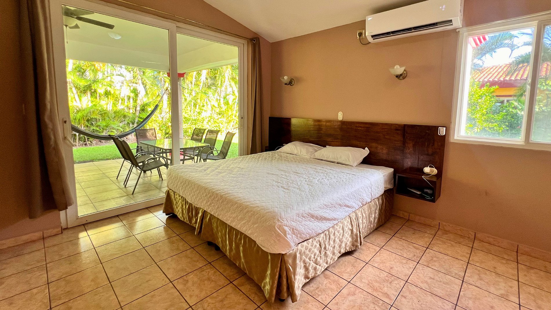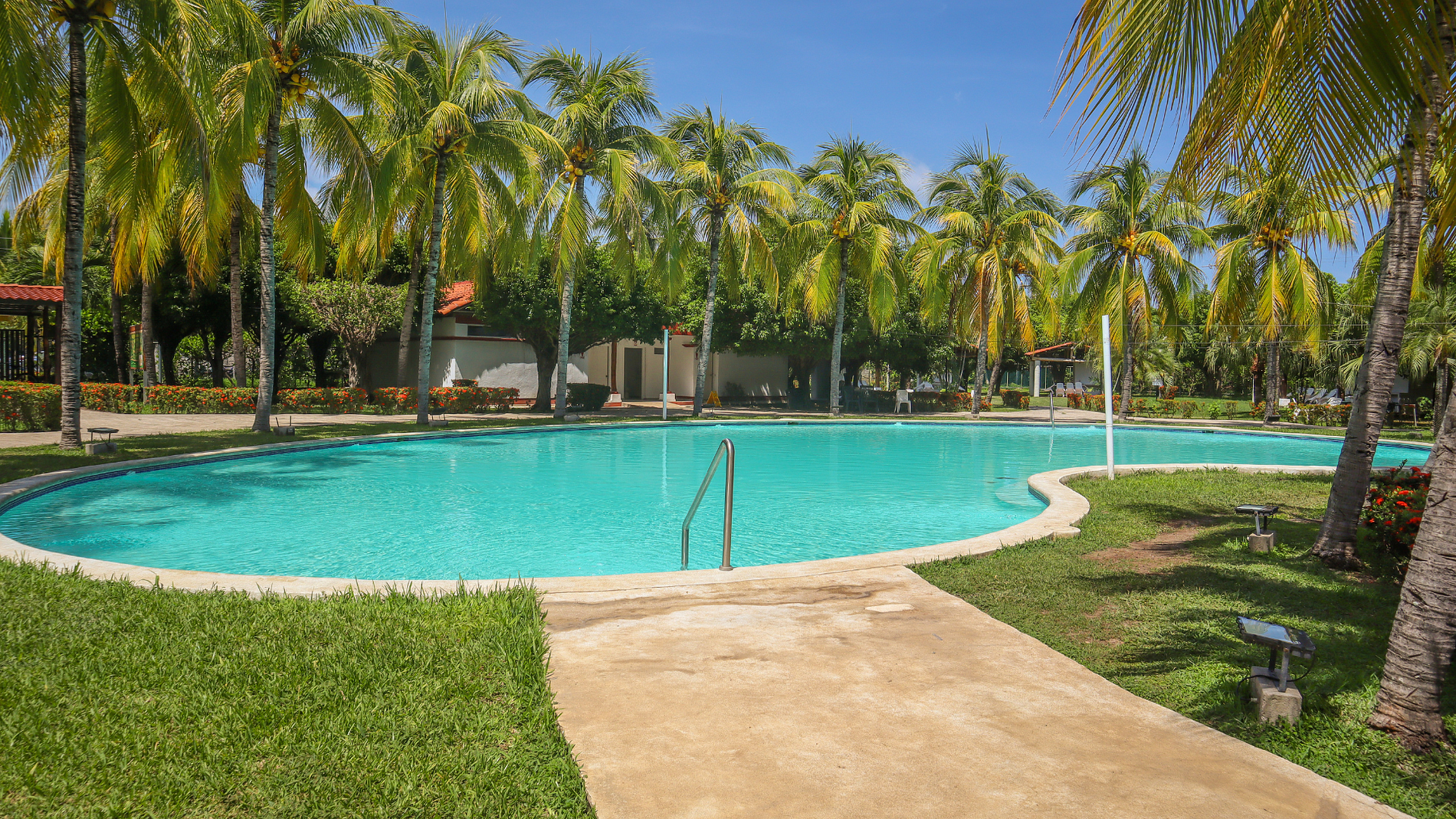 -2 baños, sala, cocina, terraza, jardines, hamacas y piscina.