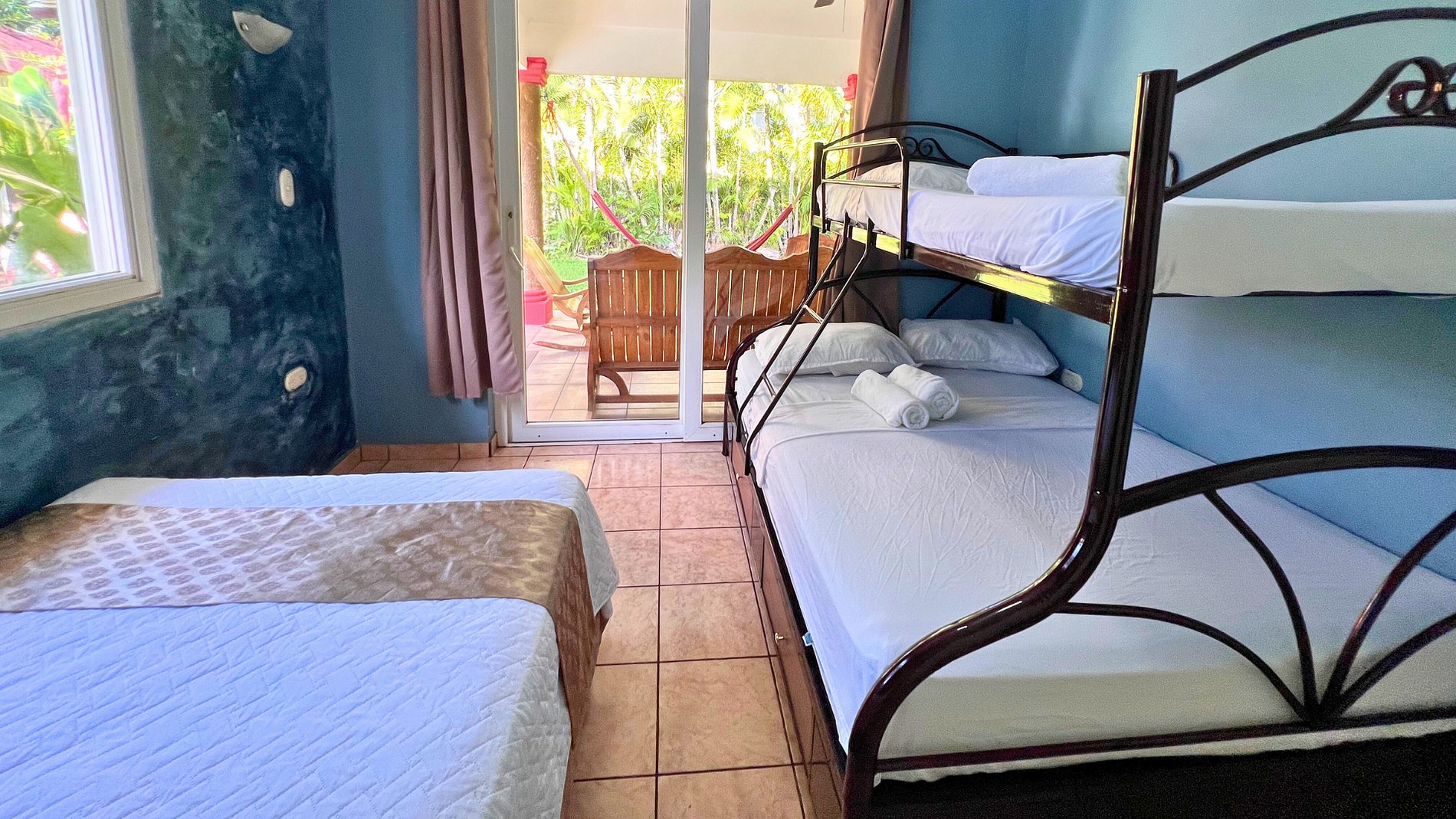 -La casa tiene 3 habitaciones (1 cama King, 2 camas single y 2 literas triples)